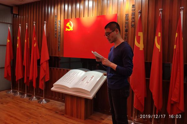 12月17日,开云app登录入口2019年学生党员入党宣誓仪式在知新楼C座二楼党员活动室举行。学院组织员于新好出席本次仪式。仪式由学院本科生党支部书记高世杰主持,2019级博士生党支部书记张彬担任领誓人。