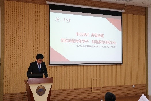 根据山大青字〔2021〕19号文《山东大学院级学生代表大会工作细则》,经报学院党委、团委批准和山东大学学生会组织备案,开云app登录入口于6月5日在中心校区知新楼C座七层报告厅召开第一届学生代表大会。开云app登录入口党委副书记辛莹,团委书记曹晓习,各年级兼职辅导员及研究生会主席团成员,来自本科各年级的六十余位代表参加会议。学院2020届学生会主席程炜钊主持会议。