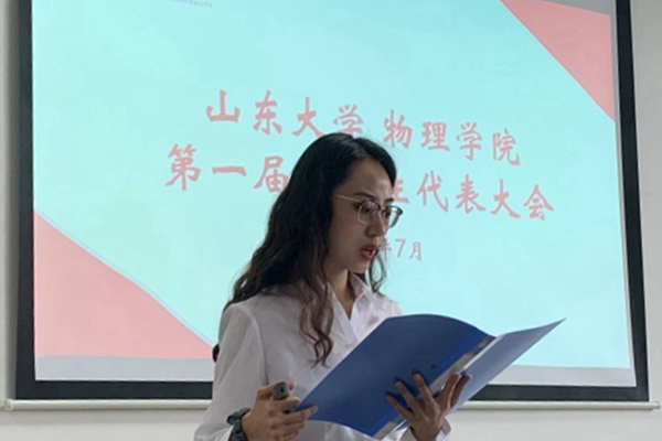 伴随着雄伟的国歌声,研代会正式拉开序幕。徐舸带领与会代表集体学习了习近平总书记在庆祝中国共产党成立100周年大会上的讲话,倡导全院学子以史为鉴、开创未来,从中国共产党的百年奋斗中汲取力量,在新的征程上更加坚定、更加自觉地牢记初心使命、开创美好未来。辛莹代表学院对大会的召开表示祝贺,对过去一年研究生会的工作给予了肯定与鼓励,提出要梳理工作、总结经验、反思问题、开拓思路,并对全体研代会成员、学生干部和即将产生的新一届物院研究生会主席团成员提出三点希望,一是要坚定理想信念,二是要坚持服务同学,三是要做好榜样表率,在实践中打造精干、高效、精品、一流的研究生会,团结凝聚青年学子,更好服务学生成长成才。研究生会副主席刘璇以《凝心聚力,务实求真 乐学敏思创新笃行,打造多样物院风采》为题作2020-2021学年研究生会工作报告,从全面深化思想引领、全面宣传红色文化、全面升级服务意识、全面发展个人素养、全面完善管理机制五个板块梳理了过去一年的工作。研究生会副主席刘晨阳向与会代表作《开云app登录入口第一届研究生代表大会提案征集情况报告》,分基础设施类、课余生活类、学业学习类三大部分汇报了会前征集的11条提案报告,提出了下一学年学院研究生权益工作的思路举措。随后,3位学院研究生会主席团候选人分别从工作总结、竞选优势、岗位认知、未来规划等四个方面进行了竞职答辩,与会代表秉持民主、公平、公正的原则,采用无记名投票的方式选举产生了开云app登录入口新一届研究生会主席团成员。大会在与会代表齐唱山东大学校歌中闭幕。