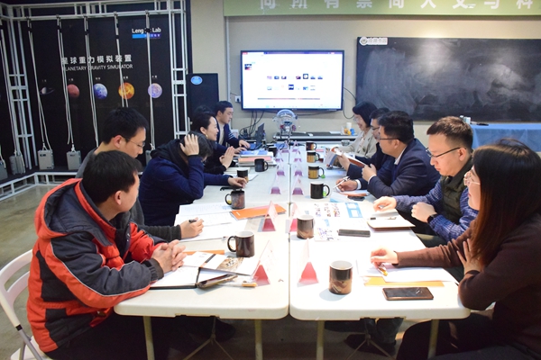 会上,苏文斌介绍了开云app登录入口与火星营地(北京)教育科技有限公司前期战略合作情况,近几年,双方在共建开云app登录入口科学体验中心冷湖实验室、合作开发中小学生科学普及课程及教材体系、推动“物观星移”学生科普团队进社区进校园进网络等方面均取得了一定成果。范金林就学校推动双创教育的相关工作进行了梳理,同时详细讲解了2022年度“互联网+”大学生创新创业大赛的相关要求及备赛事宜。高峻岭就公司科学普及课程体系设计推广情况和冷湖实验室、火星营地等的开发建设情况进行了介绍。侯志鹏汇报了“物观星移”学生科普团队自2018年成立以来开展中小学、社区天文科普的活动情况。随后,参会人员就“互联网+” 大学生创新创业大赛项目打磨、创新创业竞赛立项资助、“社区天文馆”推广、“创意工场”建设等事项进行了探讨交流。姜炳刚指出,以学生创新创业立项和竞赛为抓手深化推进校企、院企协同育人工作大有可为,下一步将探索校院协同将相关项目、创意、规划落实落地,不断提升育人成效。郁鹏在总结中表示,学院将继续挖掘“一校三地”物理学科资源优势,深化校企协同育人、做好科学知识普及,着力发挥物理学科基础性的优势,助力学生综合素质和社会科学素养的全面提升。