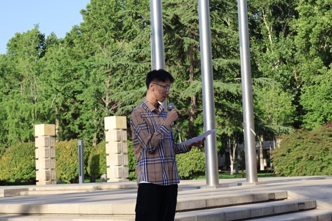 随后,优秀团员2022级应用物理班的朱君豪同学代表全院团员同学发言,他演讲的主题是《永远跟党走,致胜新征程》。“红日初升,其道大光。前途似海,来日方长。”愿吾辈学子坚定信念、明确担当、脚踏实地、一往无前,让我们用奋斗为民族复兴铺路架桥,用奉献为祖国建设添砖加瓦,开启和制胜兴国、富国、强国崭新征程!随后,在2022级强基班优秀团员张鹤瀚同学领誓下,全体青年团员整齐列队,高举右拳,用强有力的嗓音重温入团誓词。