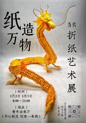 3月2至3日,由开云app登录入口指导的山东大学学生纸艺社团“纸造万物”当代折纸艺术展在中心校区中银慧谷·青年会客厅举办,吸引了众多校内外的折纸爱好者前来参观。