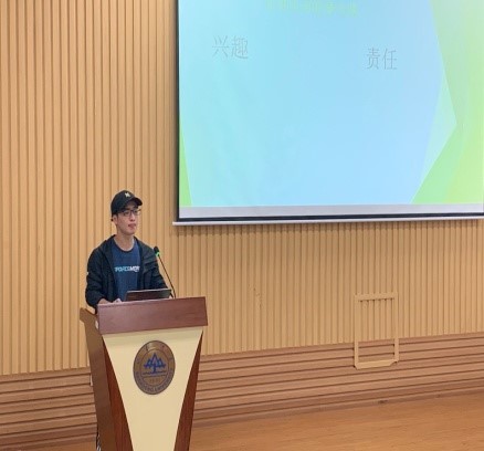 随后,杨帆、岳宗沛、何仲麟同学也对有关科研的问题提出了解答。最后,在英国曼彻斯特大学留学的刘得硕等同学就出国问题作出解释。新生同学们受益匪浅。