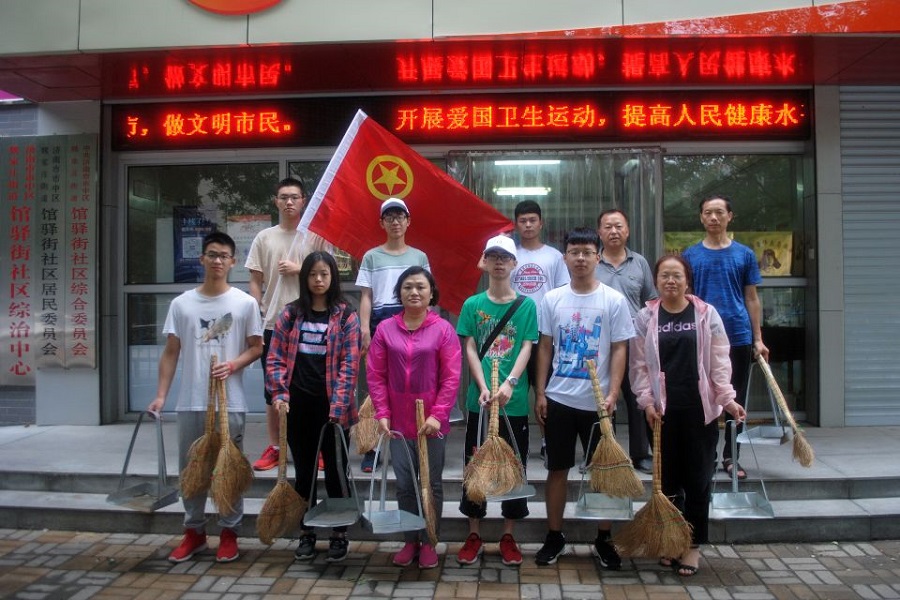 工作交接过程后,调研团与街道社区同志共同清洁了小区内的环境,队员们对楼道和院内垃圾进行了清理、将自行车整齐的摆放在小区内,对草坪绿地和路面进行了重点清扫。红日初升,队员的额头上沁了一层密密的汗珠,经过两个多小时的共同劳动,调研团成员也对该小区有了一定了解。社区面积0.2平方公里,现有居民3385户,总人口8260人,内有住宅楼30栋,平房110户,居民健身路径3处,小型健身广场2处,总面积1100平方米。