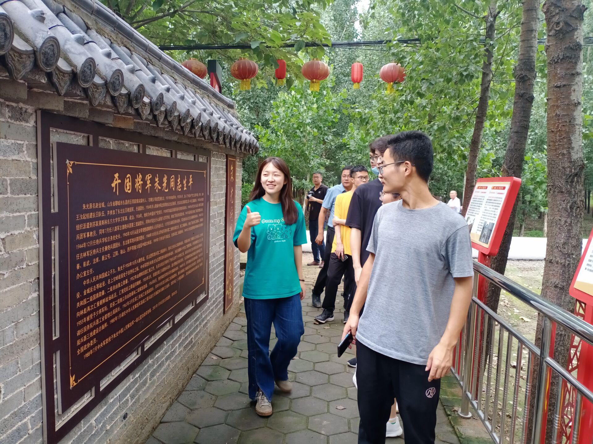 最后,团队成员前往郑家镇朱光将军纪念馆参观学习当地开国将军朱光的英雄事迹。据了解,朱光将军曾参加过百战大战,解放彰武、法库、新立屯、辽阳、鞍山、四平等战斗和辽沈、平津战役以及抗美援朝战争。朱光将军纪念馆建成于2013年10月,由东昌府区郑家镇党委政府资助成馆。朱光将军纪念馆座落于将军故里郑家镇宋家村,馆内有将军墓、将军铜像及将军遗物、手稿等珍贵资料。2013年11月16日朱光将军魂归故里骨灰安放仪式在此举行。2018年3月,郑家镇府将朱光将军纪念馆列为爱国主义、廉政文化双教育基地。