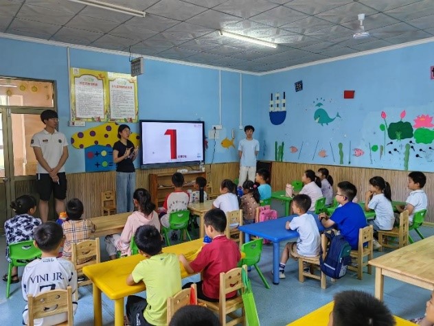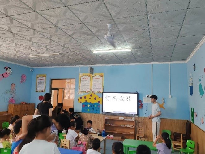 营仪式上,支教队成员们对本次支教活动的概况进行了介绍,让全体参会人员对本次支教活动有了更加深入的了解。接着,支教队进行了破冰活动,通过自我介绍、成语故事分享、才艺展示等环节发挥学生的创造力,并通过“你画我猜” “老师说” “数字炸弹”等游戏,拉进心与心之间的距离。丰富多彩的破冰活动拉近了老师和学生们的距离,为接下来的支教课程奠定了良好的基础。